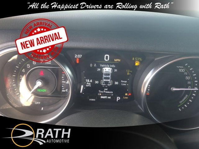 This Jeep Wrangler 4xe has a dependable Intercooled Turbo Gas/Electric I-4 2.0 L/122 engine powering this Automatic transmission. TRANSMISSION: 8-SPEED AUTO 8P75PH PHEV (STD), SKY 1-TOUCH POWER TOP -inc: Rear Window Defroster, Rear Window Wiper/Washer, Removable Rear Quarter Windows, Power Top Quarter Window Storage Bag, MOPAR ALL-WEATHER FLOOR MATS.